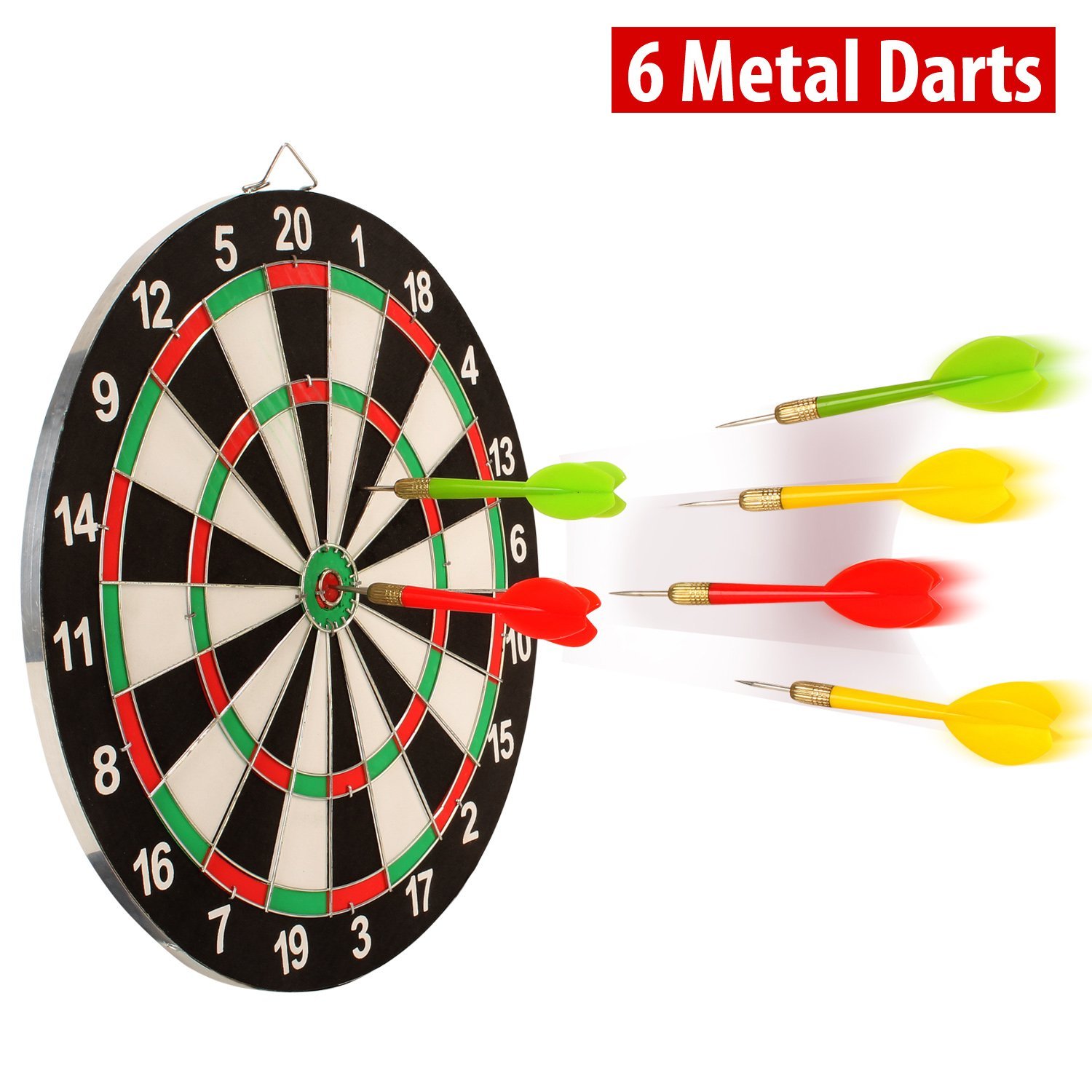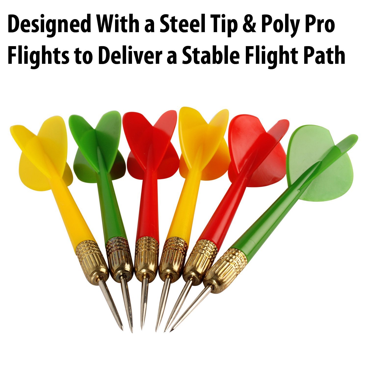 • Includes 6 durable steel darts