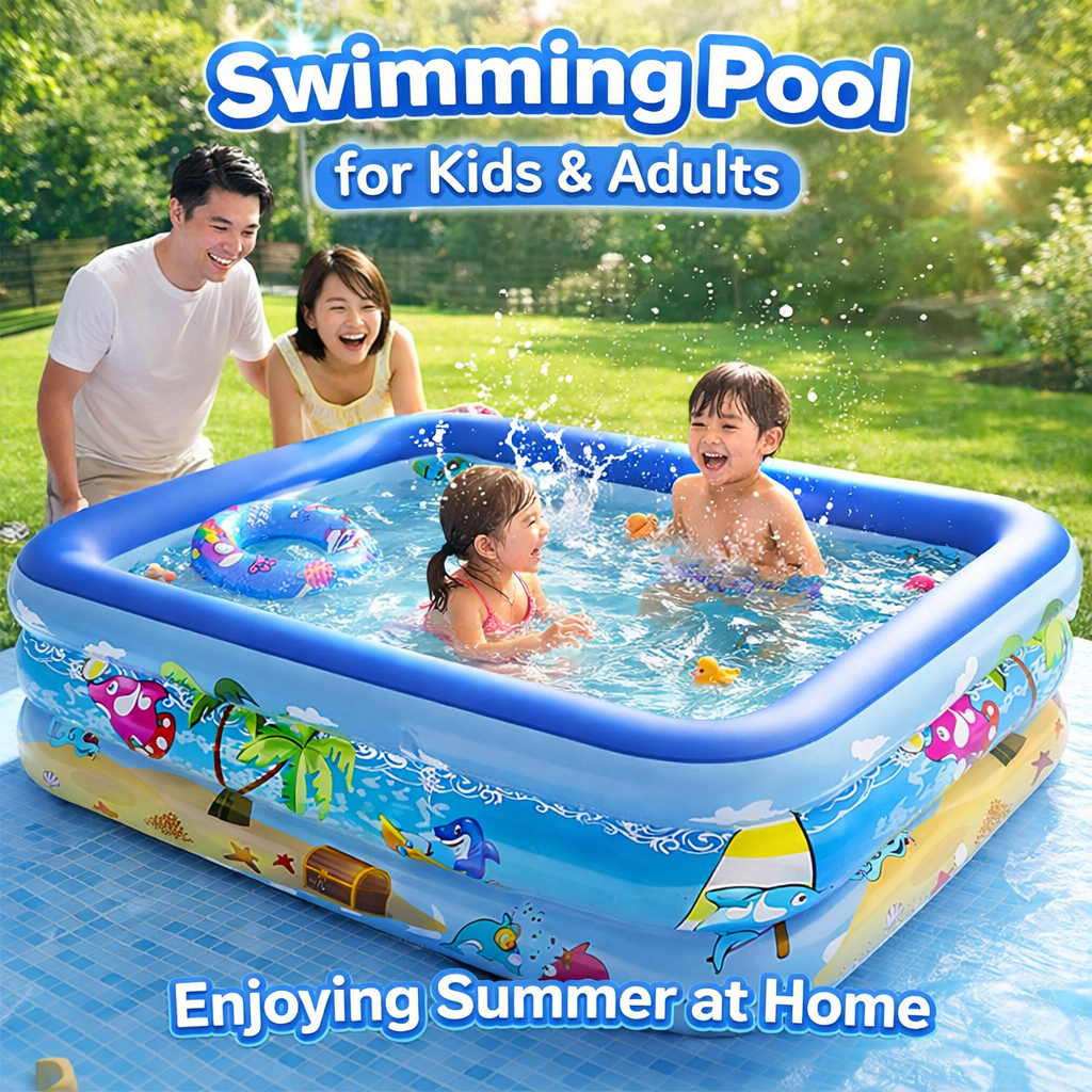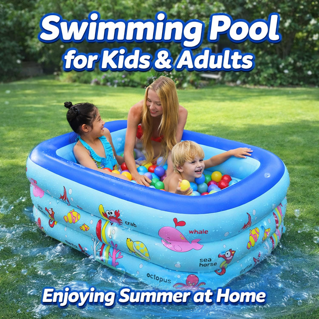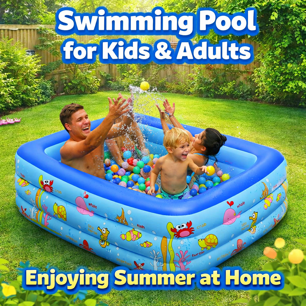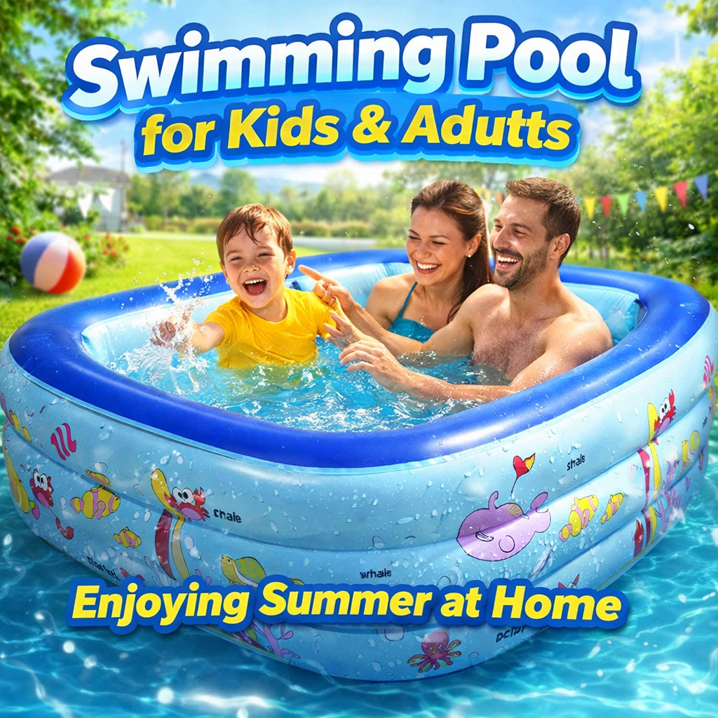 The Inflatable Swimming Pool is a perfect solution for enjoying summer at home with your family. It is designed for both kids and adults, ensuring fun, safety, and comfort in one product.